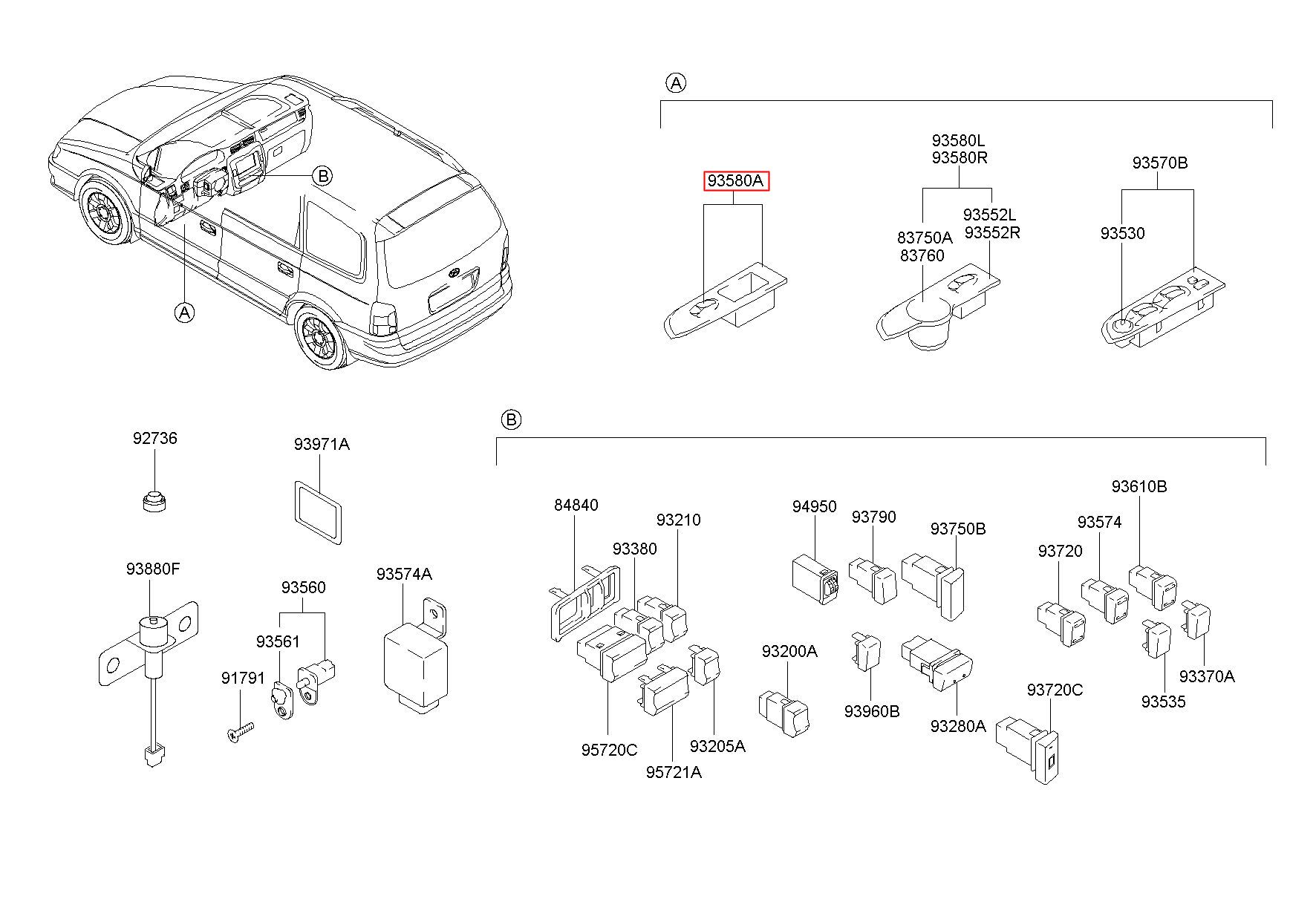 Part number from HYUNDAI (HS), TRAGET (XG) : 935753A010AX (93575-3A010AX)