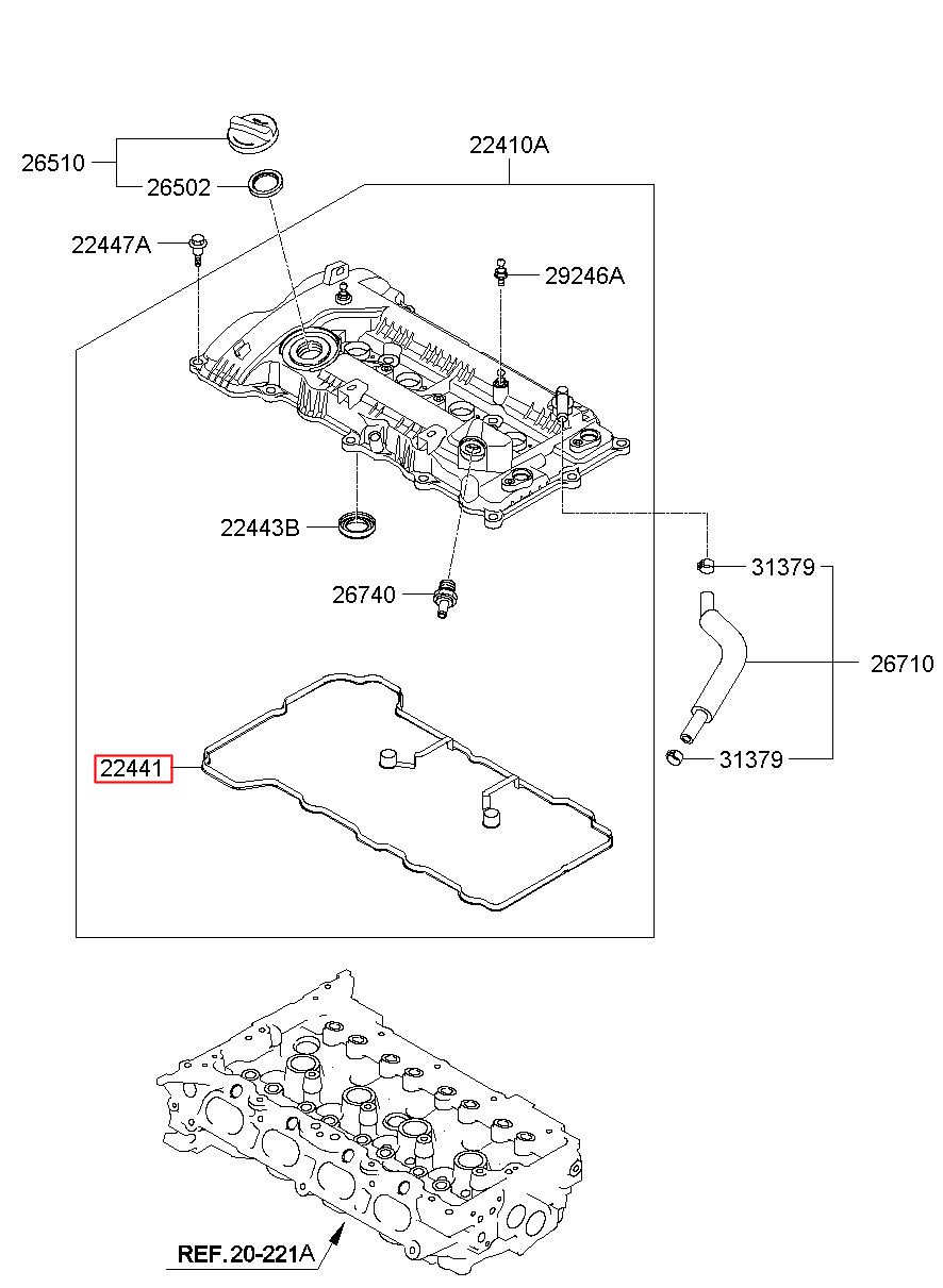 Part number from HYUNDAI (HS), YF SONATA HYBRID 11 : 224412E99A (22441-2E99A)