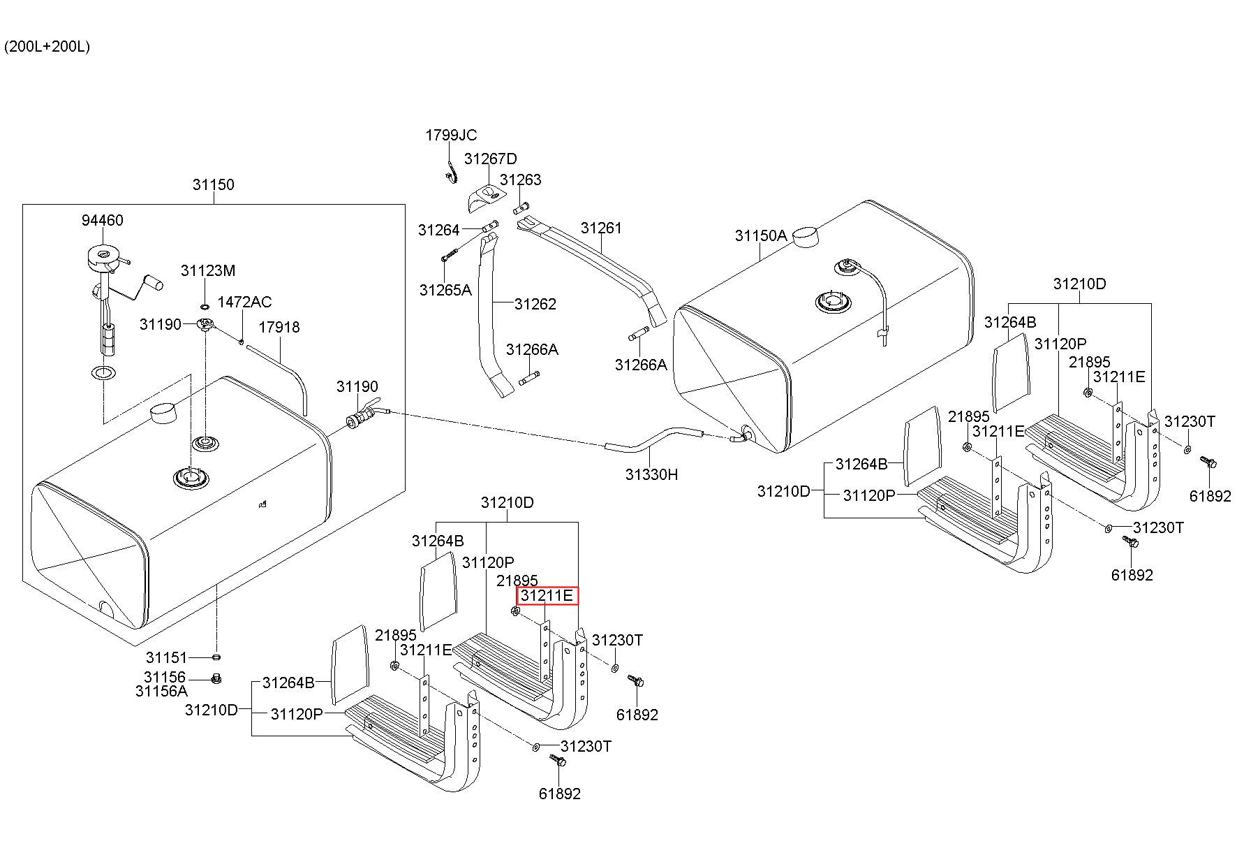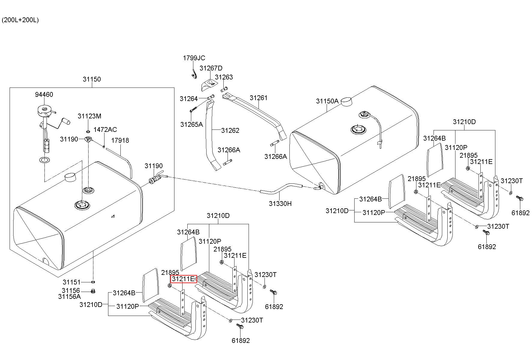 Part number from HYUNDAI (HT), 11 TON EG TRUCK(6X4) 04 F/LIFT : 31211UJ720 (31211-UJ720)