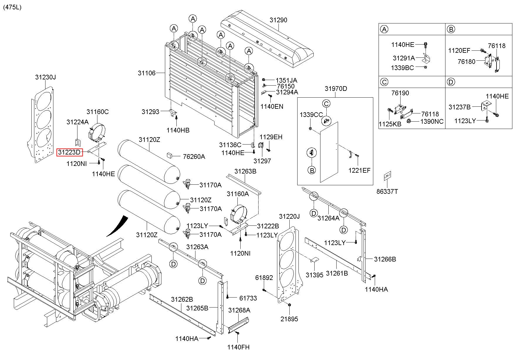 Part number from HYUNDAI (HT), MEGA TRUCK 08EM : 312236B200 (31223-6B200)