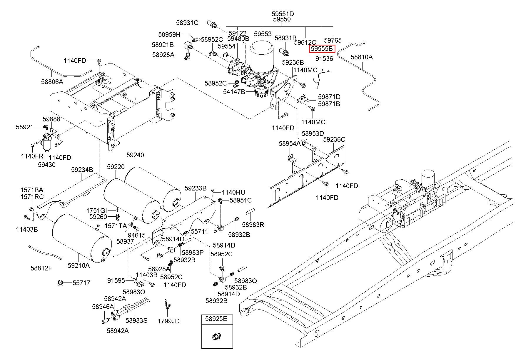 Part number from HYUNDAI (HT), 5 TON TRUCK 04 F/LIFT : 595558C500 (59555-8C500)
