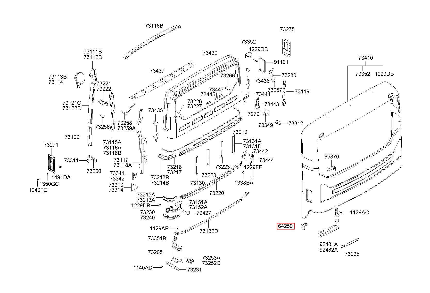 Part number from HYUNDAI (HT), AERO SPACE BUS : 642598A100 (64259-8A100)