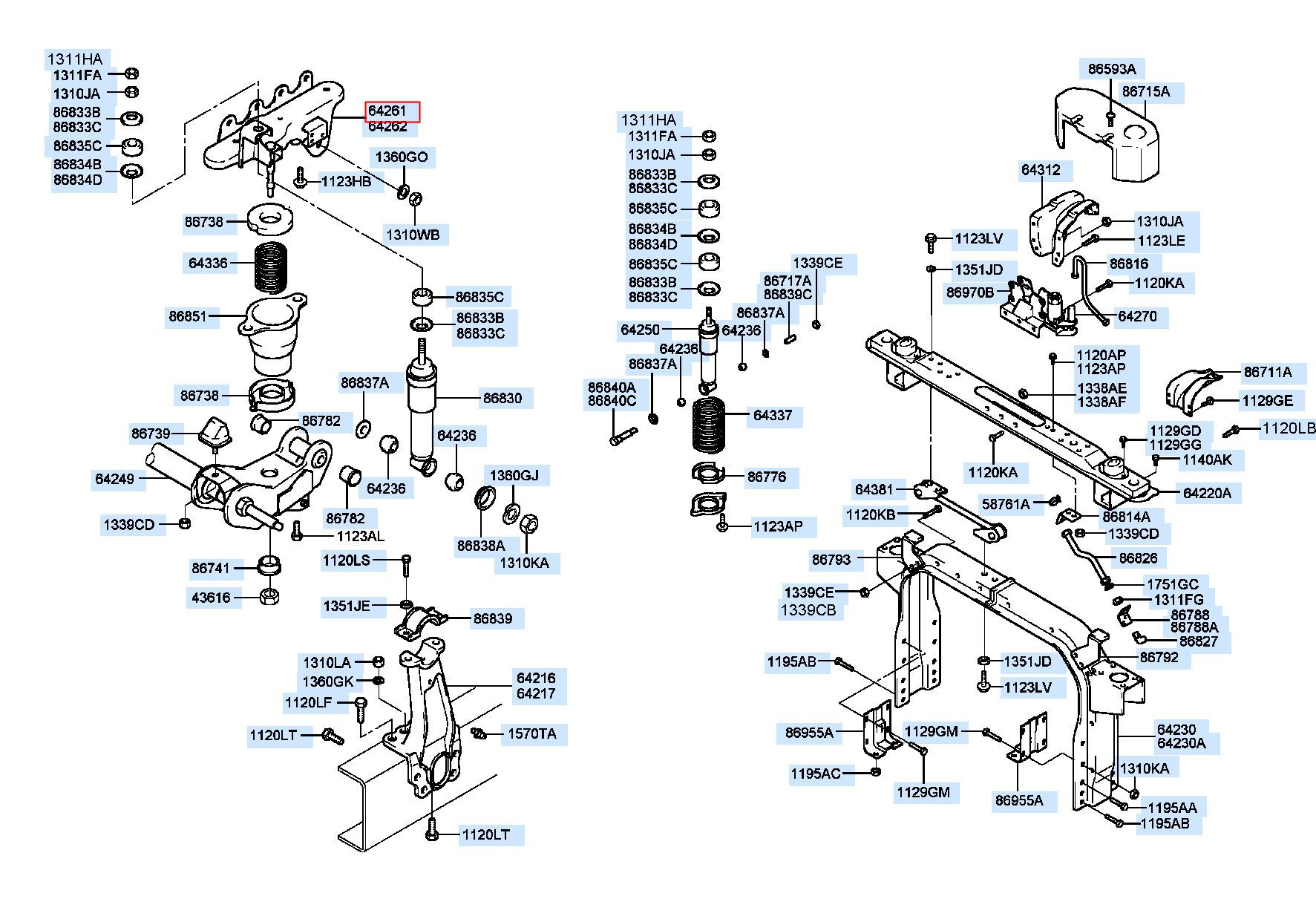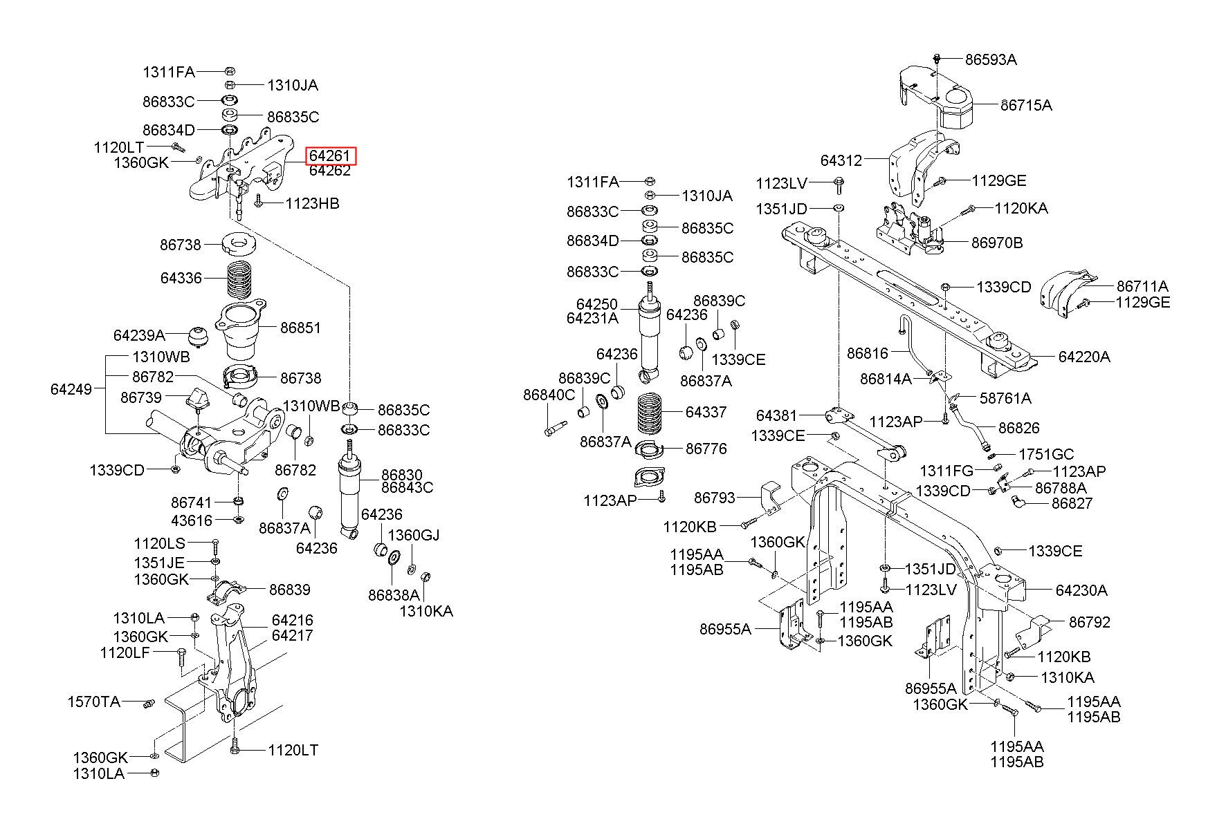 Part number from HYUNDAI (HT), SUPER TRUCK(4X2) 98 : 642617A051 (64261-7A051)