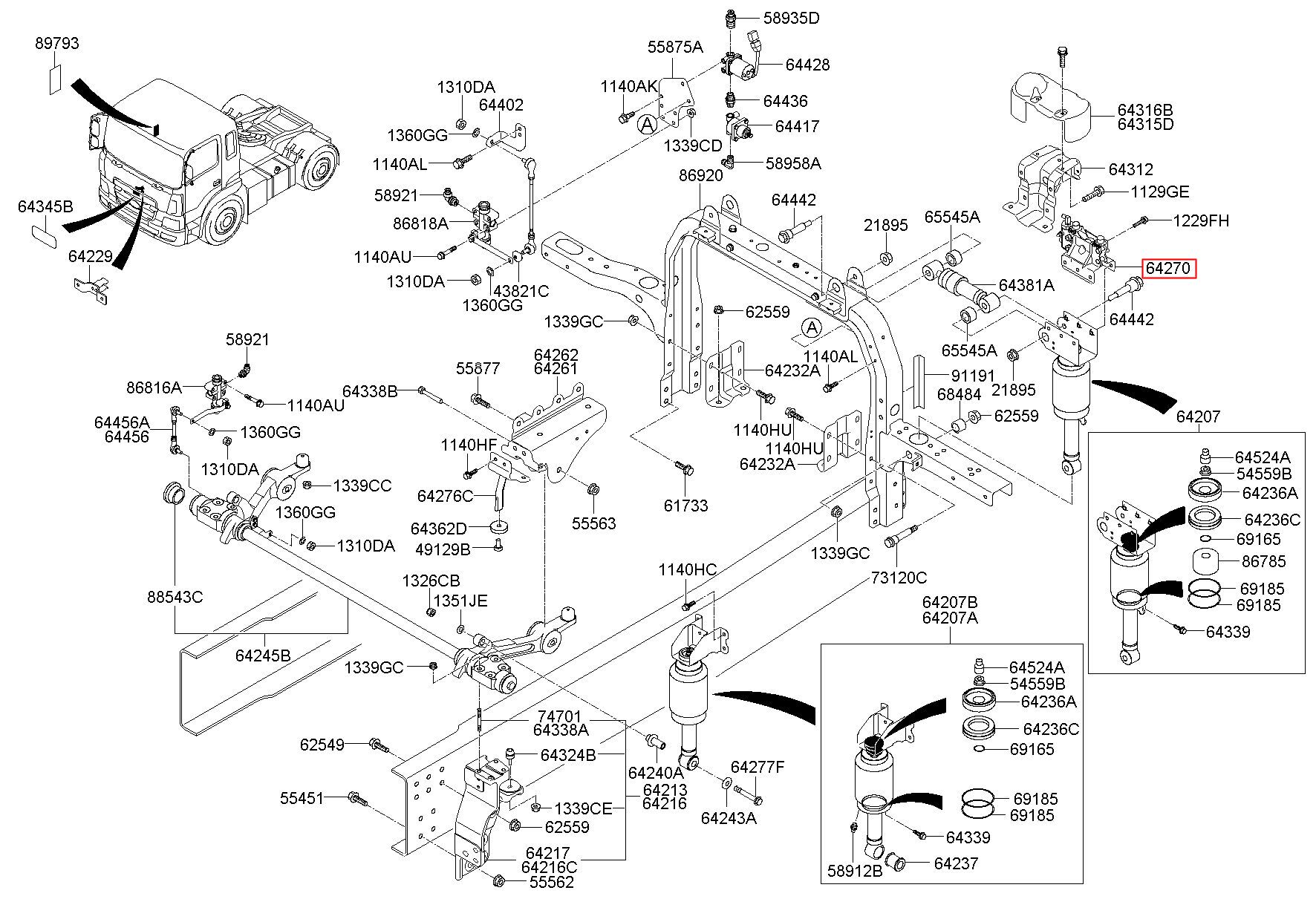Part number from HYUNDAI (HT), TRAGO(4×2) : 642707M000 (64270-7M000)