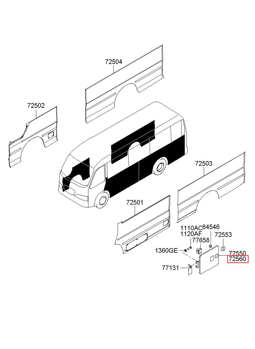 Part number from HYUNDAI (HT), COUNTY 98 : 725605A000 (72560-5A000)