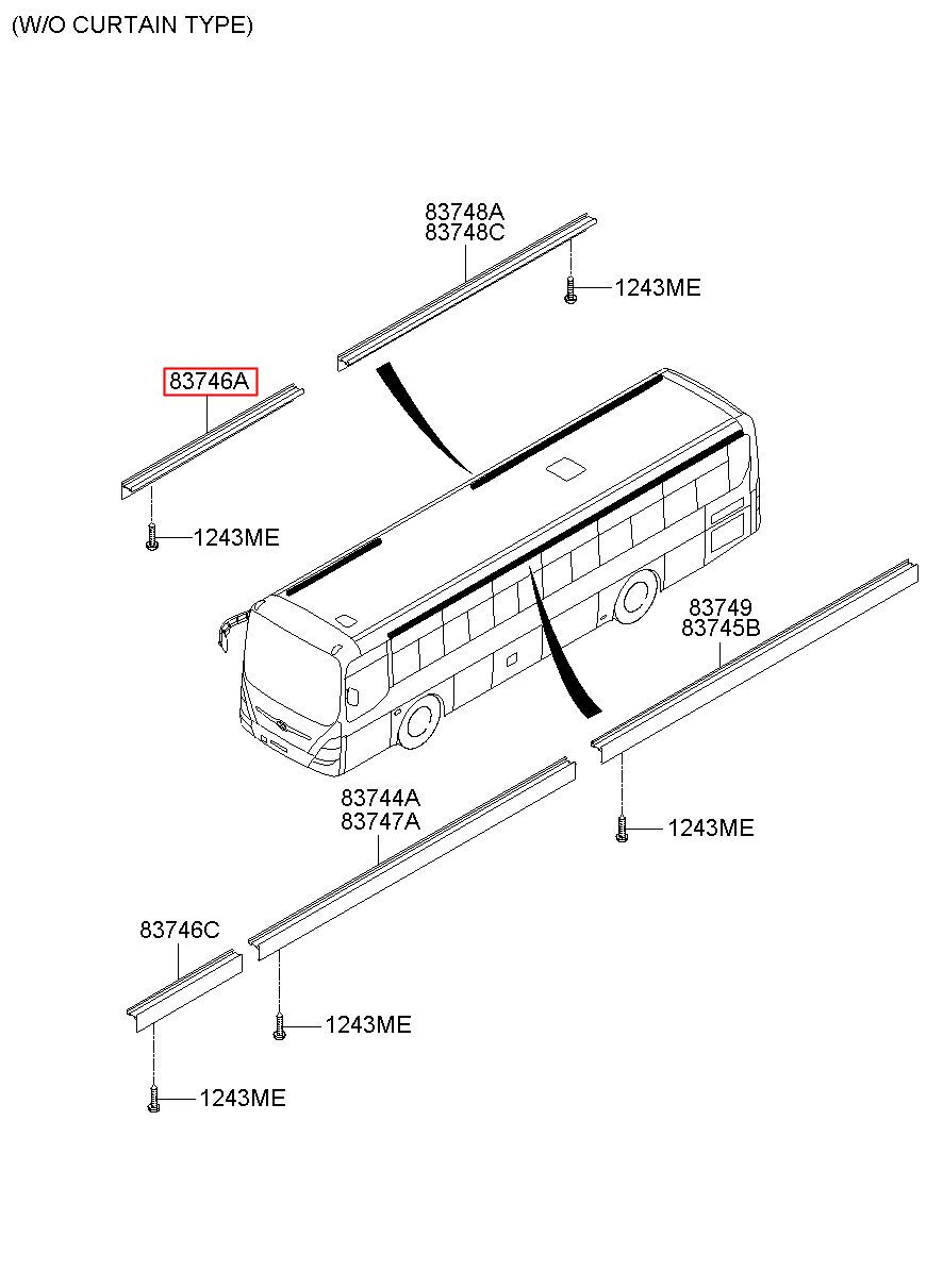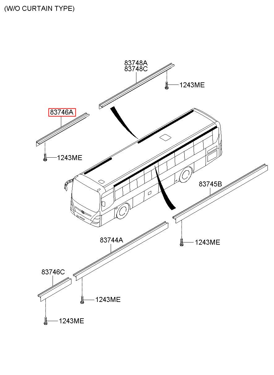 Part number from HYUNDAI (HT), GLOBAL BUS : 837465E500CA (83746-5E500CA)