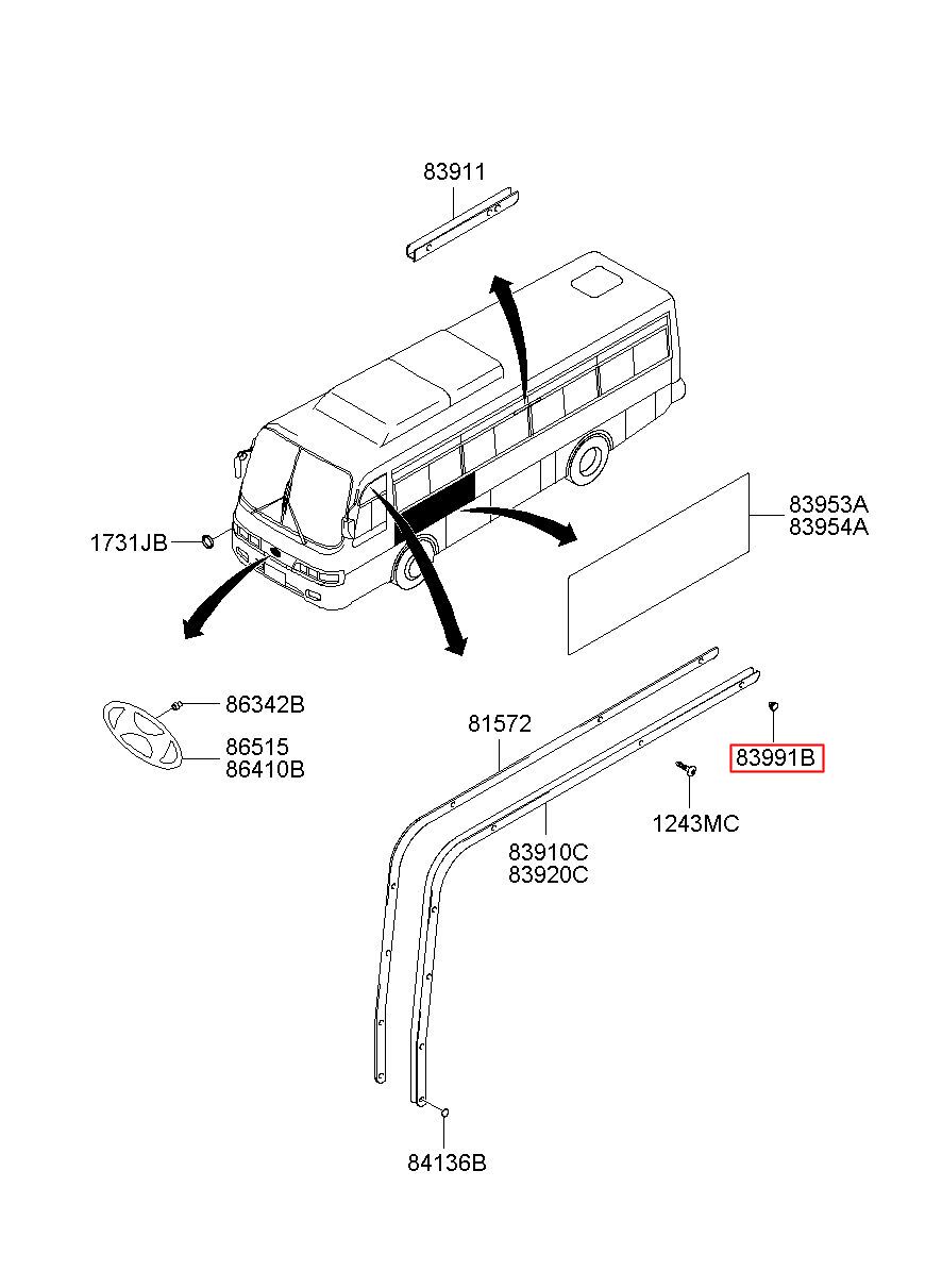 Part number from HYUNDAI (HT), AERO TOWN BUS 98 : 8399155500 (83991-55500)