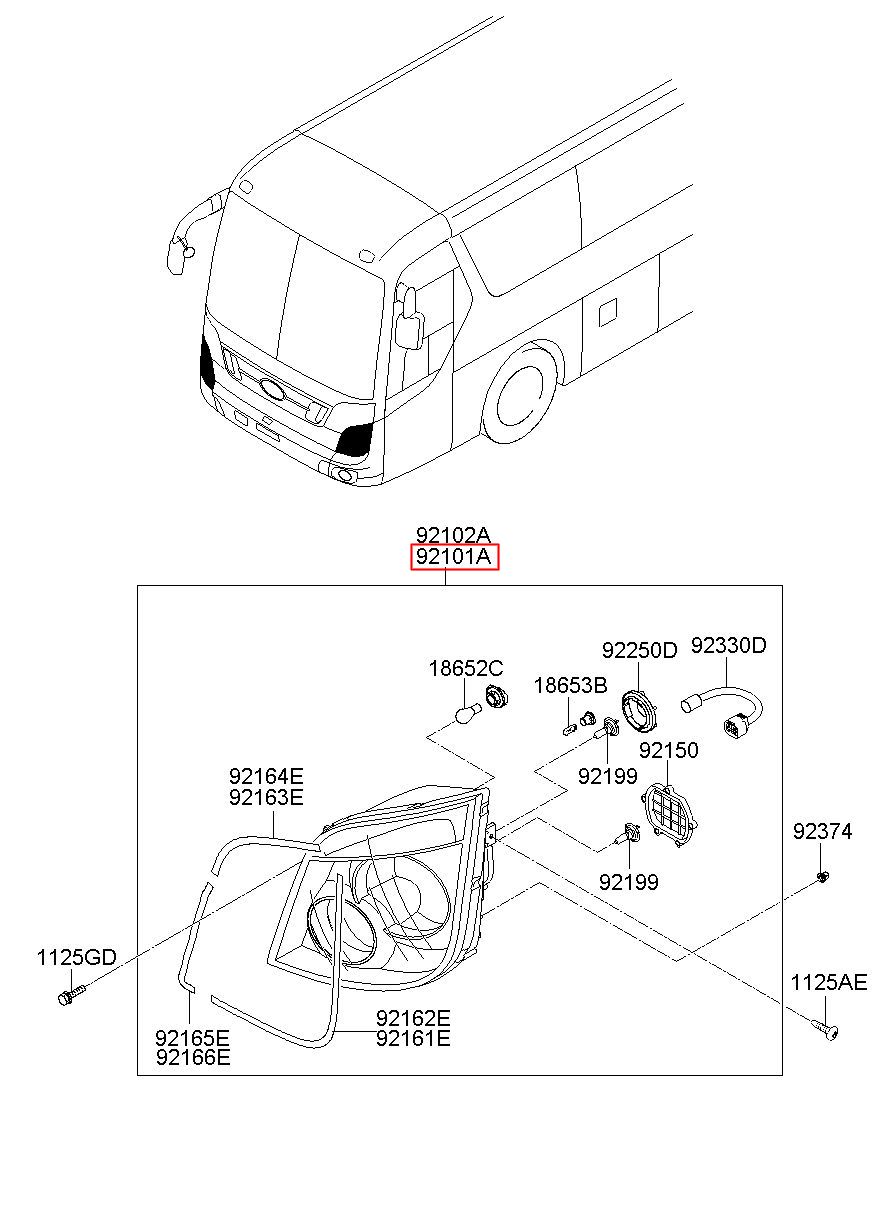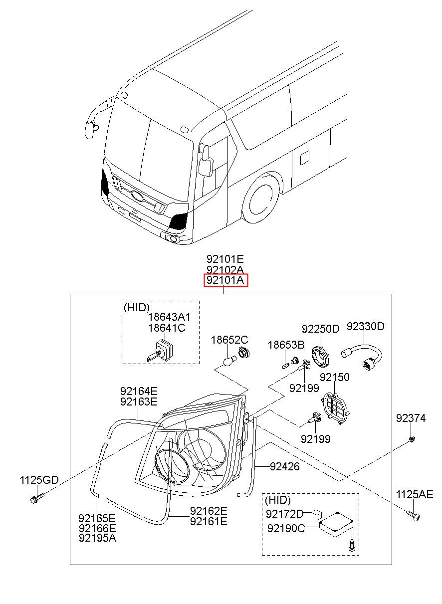 Part number from HYUNDAI (HT), PY SPACE : 921018D200 (92101-8D200)