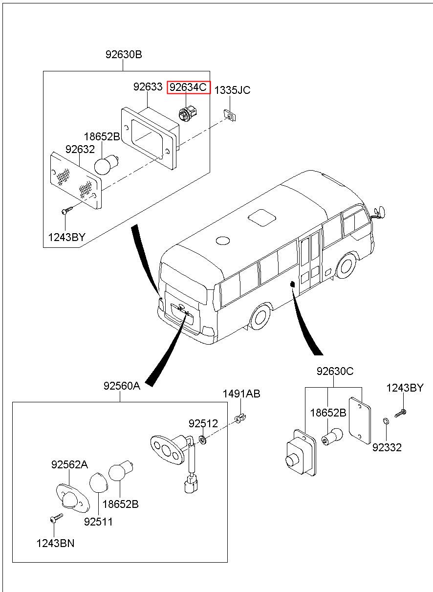 Part number from HYUNDAI (HT), COUNTY 98 : 926345A100 (92634-5A100)