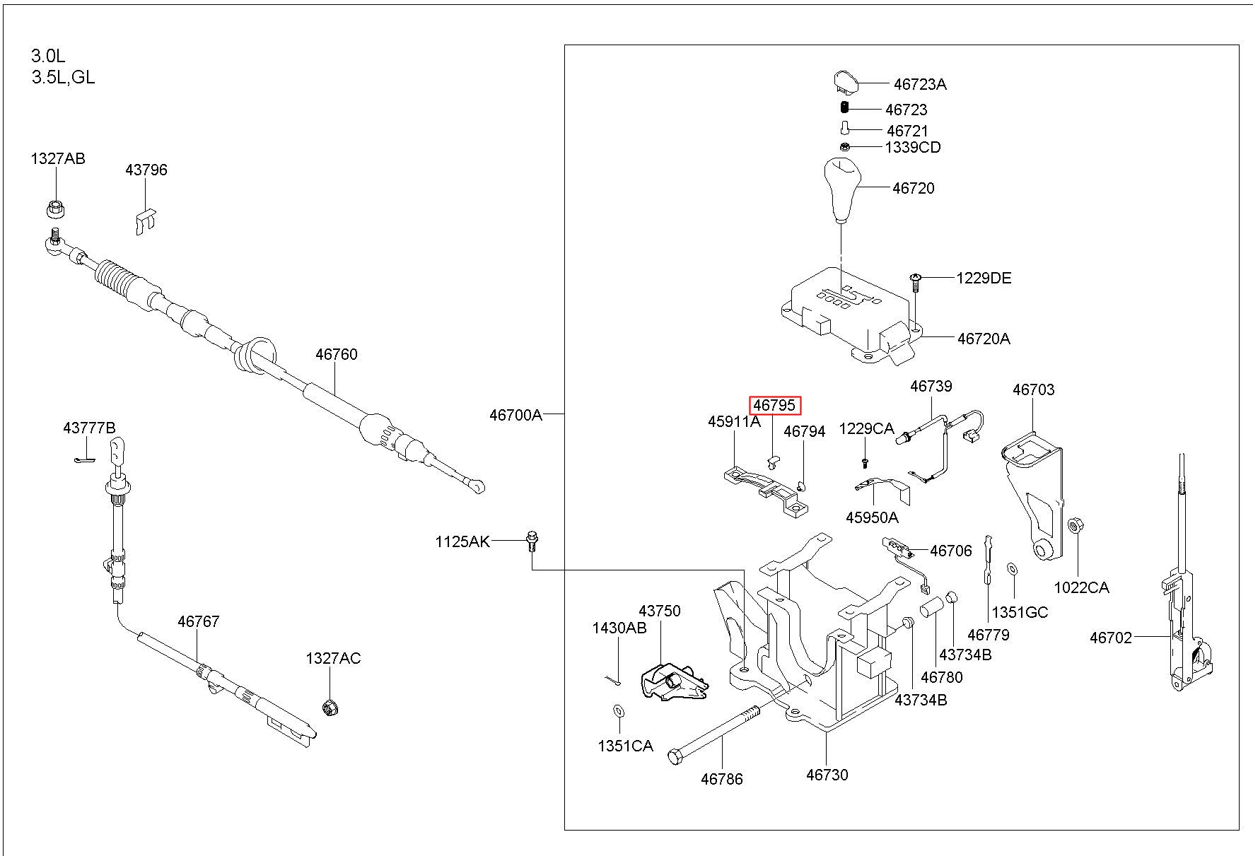 Part number from HYUNDAI (HS), EQUUS (CENTENNIAL) 99 : 467953B100 (46795-3B100)