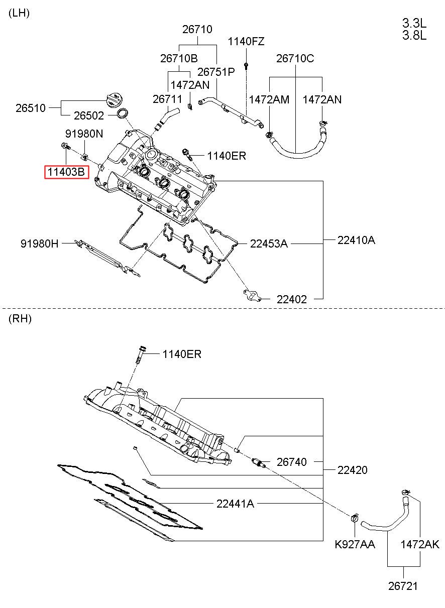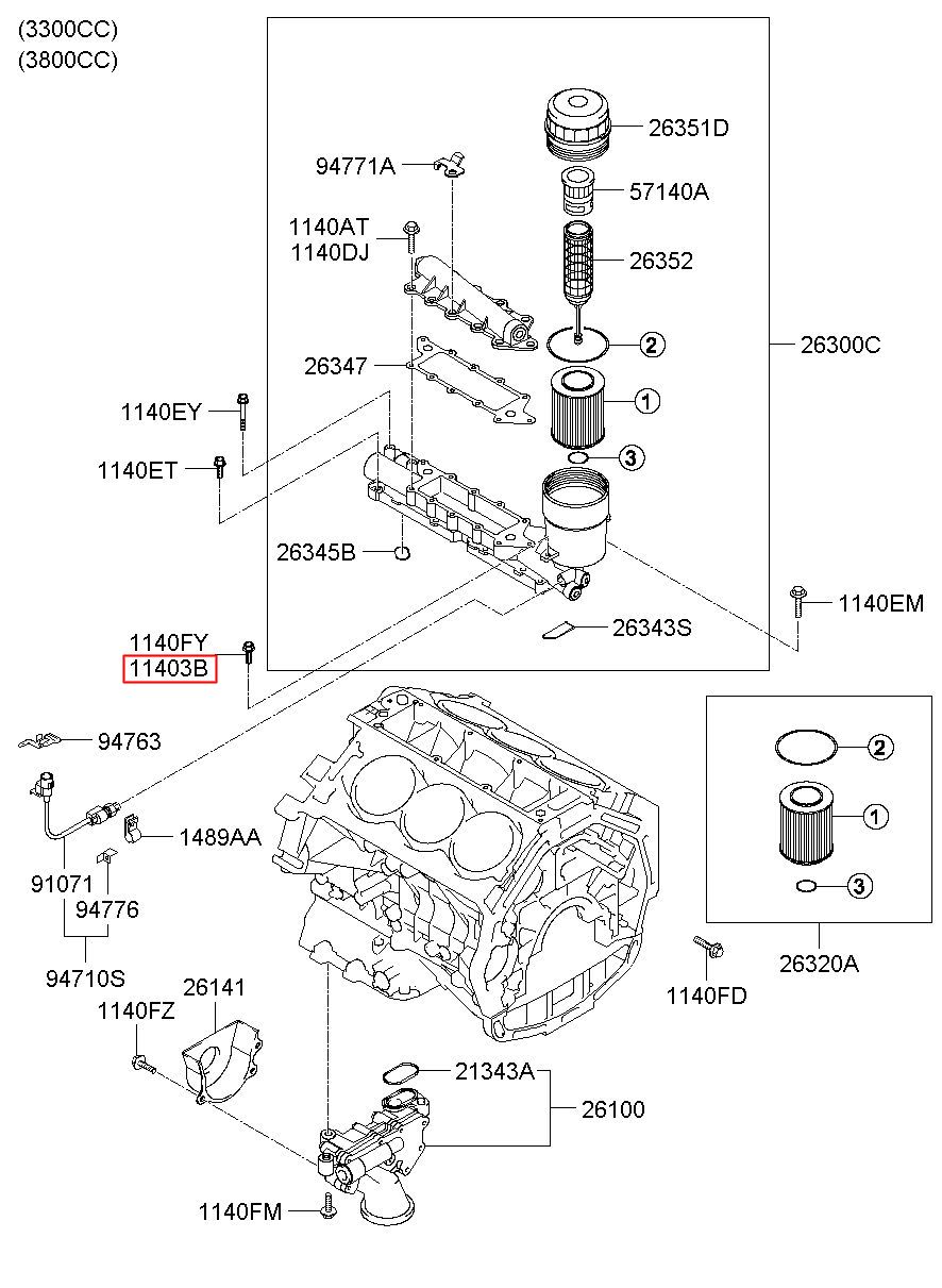 Part number from HYUNDAI (HS), EQUUS (CENTENNIAL) 99 : 1140306126B (11403-06126B)