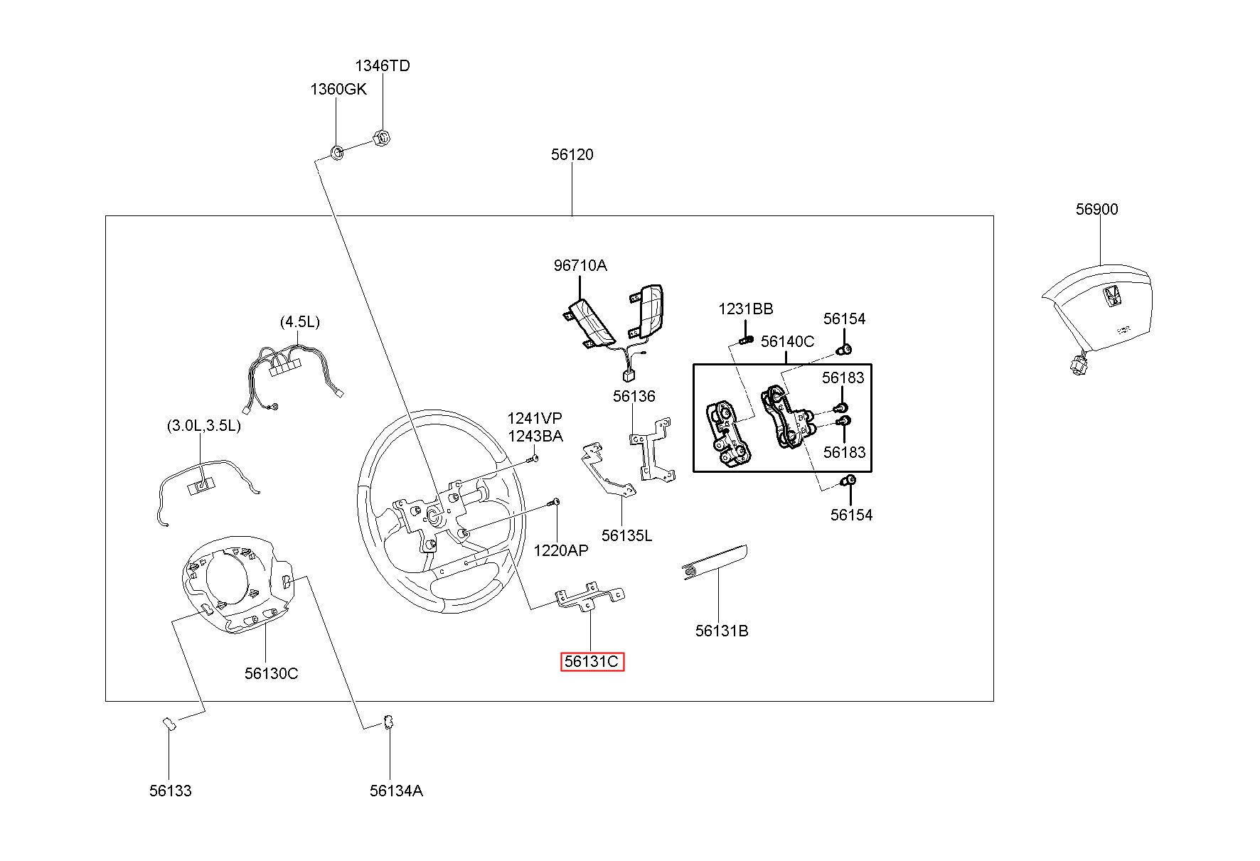 Part number from HYUNDAI (HS), EQUUS (CENTENNIAL) 99 : 561613B000 (56161-3B000)