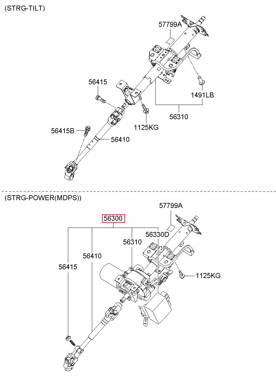 Part name: COLUMN & SHAFT ASSY-STEERING