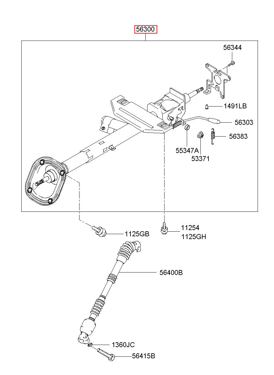 Part name: COLUMN & SHAFT ASSY-STEERING