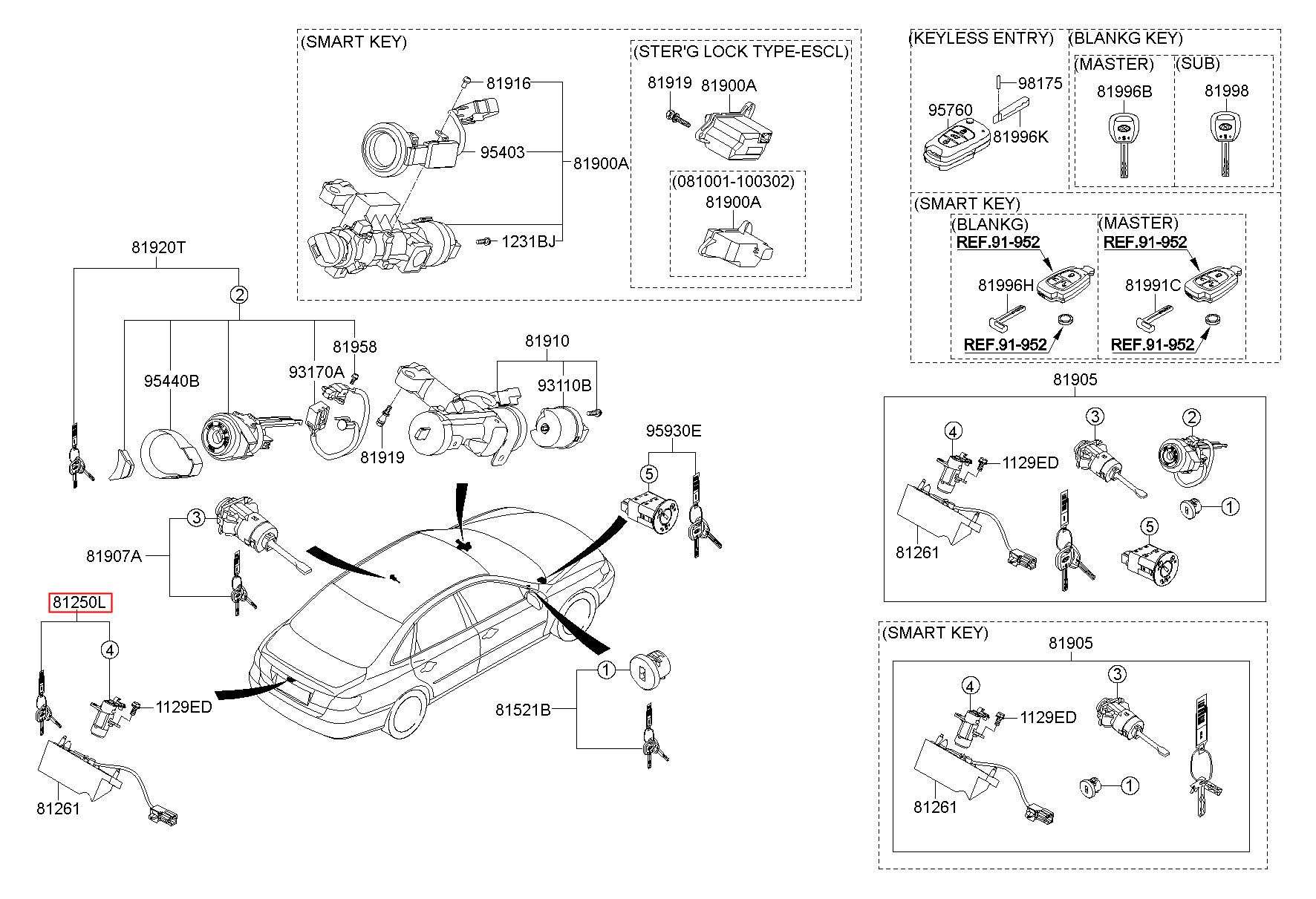 Part number from HYUNDAI (HS), GRANDEUR TG 06 : 812503LA00 (81250-3LA00)