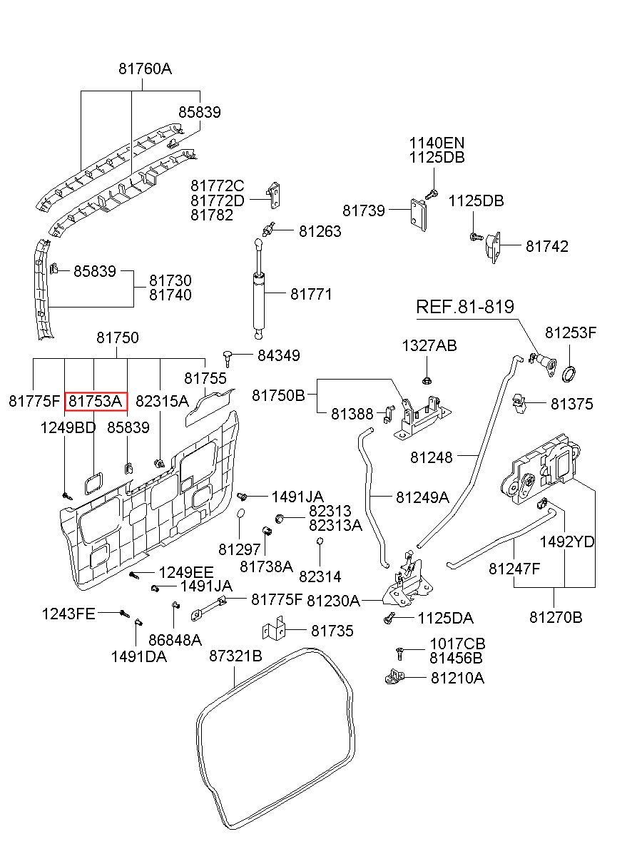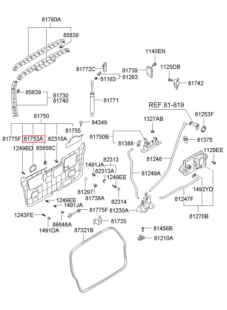 Part number from HYUNDAI (HS), TRAGET (XG) : 817543A000LT (81754-3A000LT)