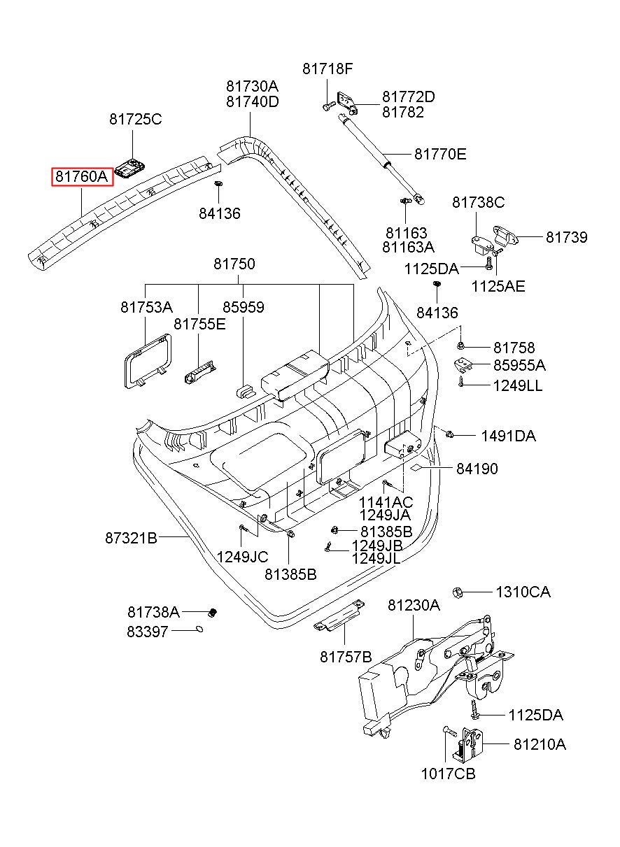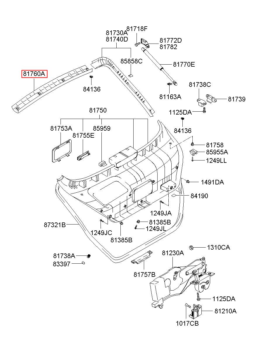Part name: TRIM ASSY-TAIL GATE UPR