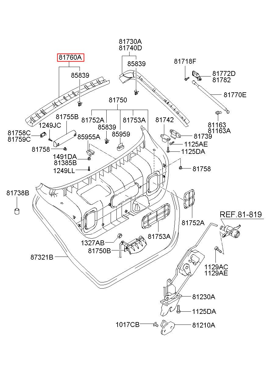 Part name: TRIM ASSY-TAIL GATE UPR