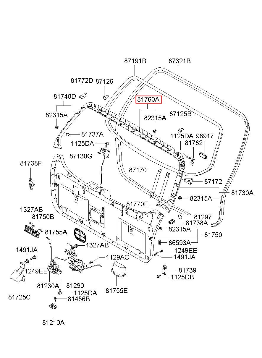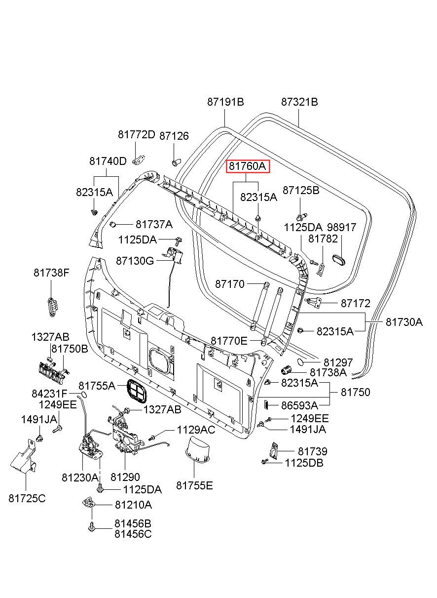 Part name: TRIM ASSY-TAIL GATE UPR