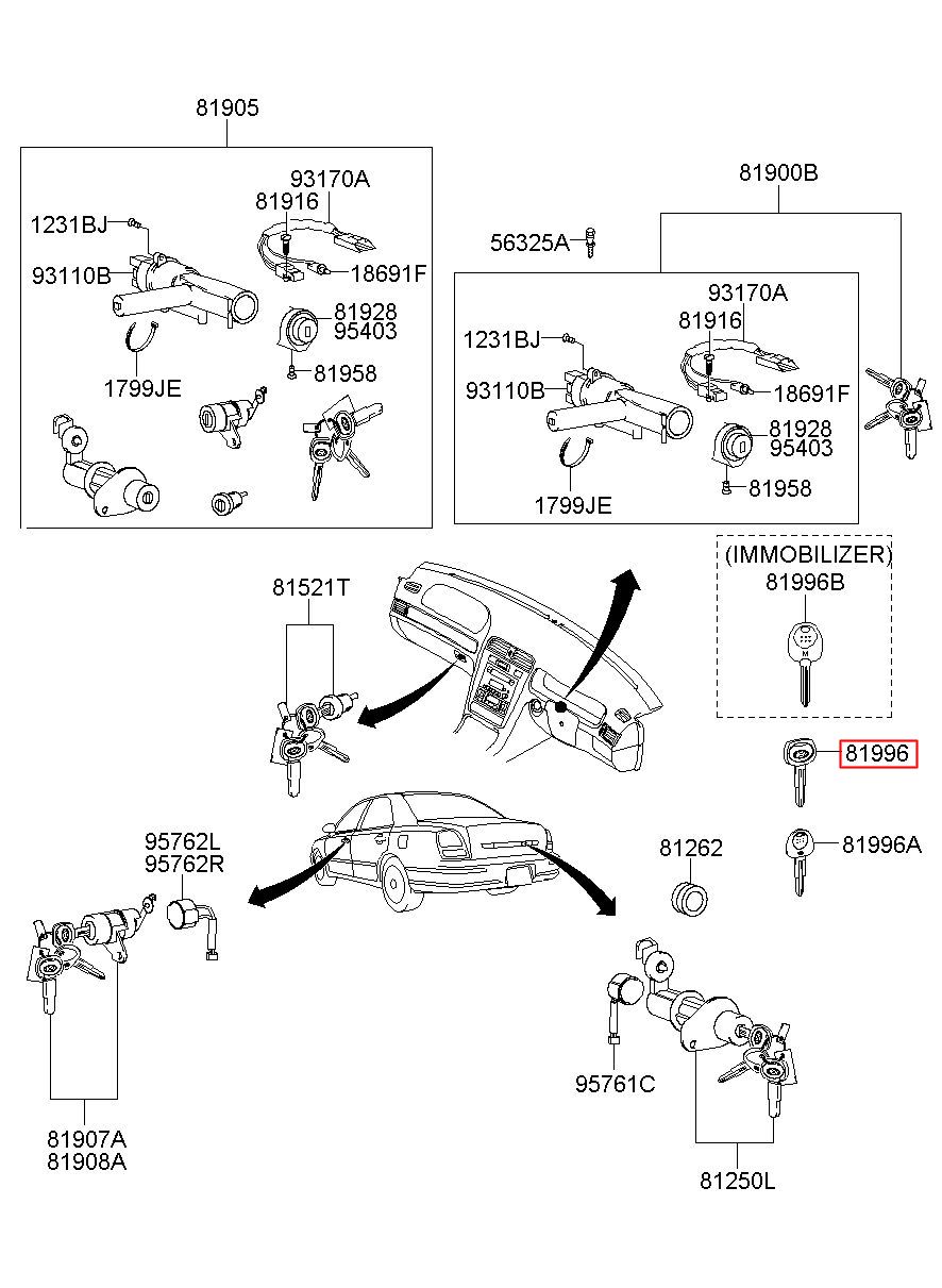 Part number from HYUNDAI (HS), GRANDEUR XG : 8199639000 (81996-39000)