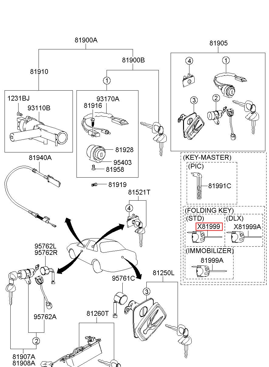 Part number from HYUNDAI (HS), EQUUS (CENTENNIAL) 99 : 819993B040 (81999-3B040)