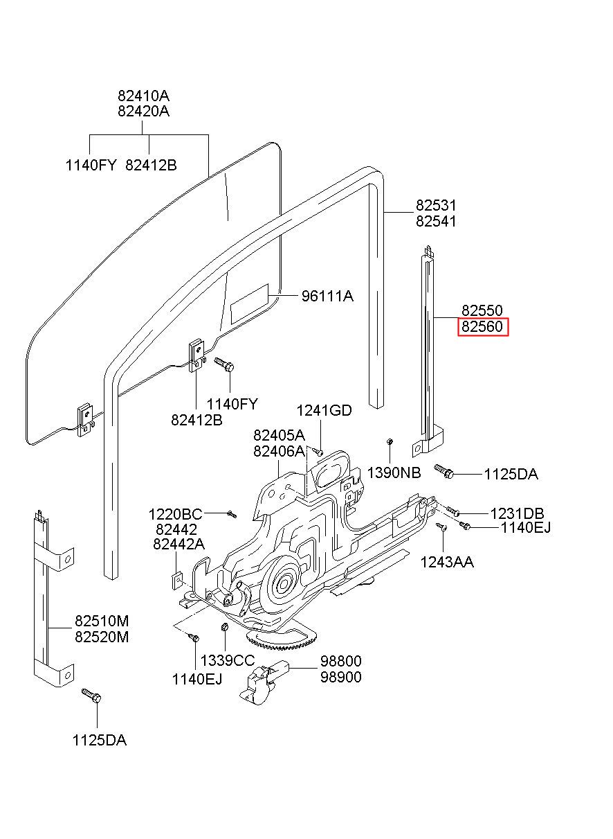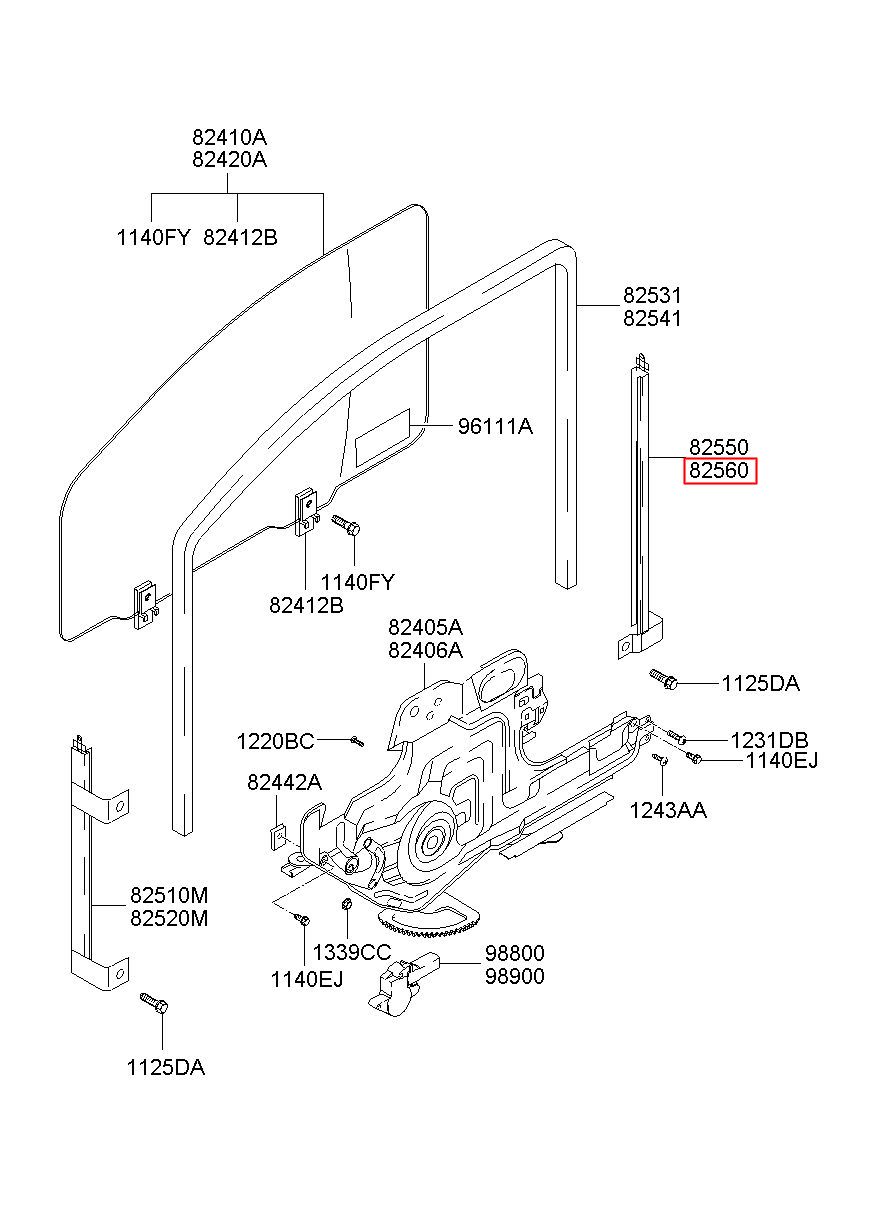 Part name: CHANNEL ASSY-FRONT DOOR REAR,R