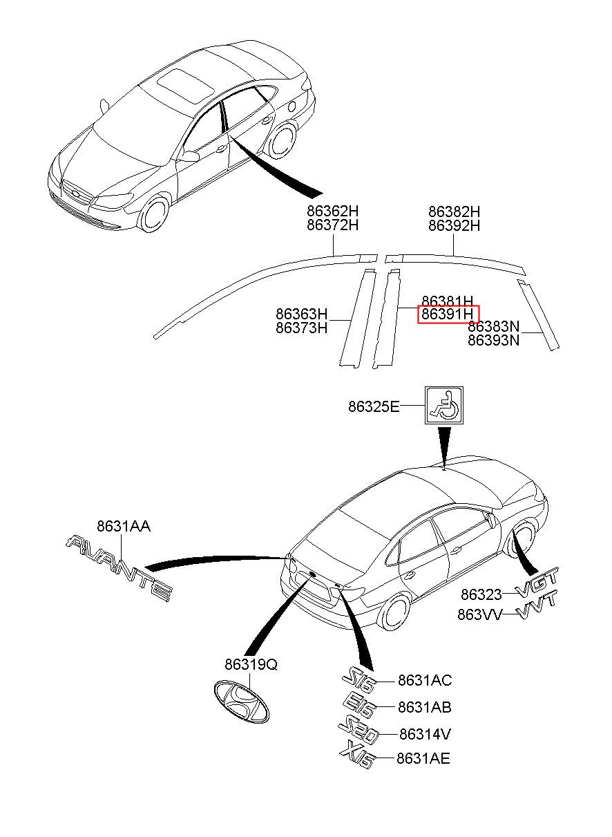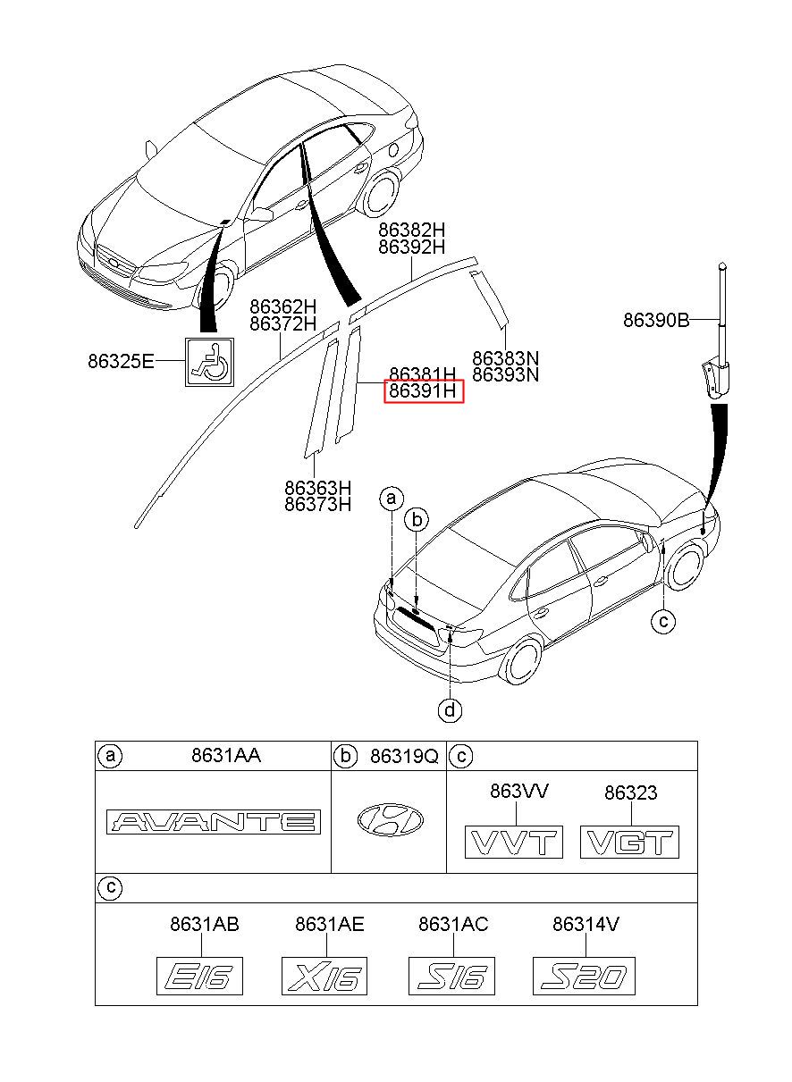 Part number from HYUNDAI (HS), NEW AVANTE (ELENTRA) : 863912H000 (86391-2H000)