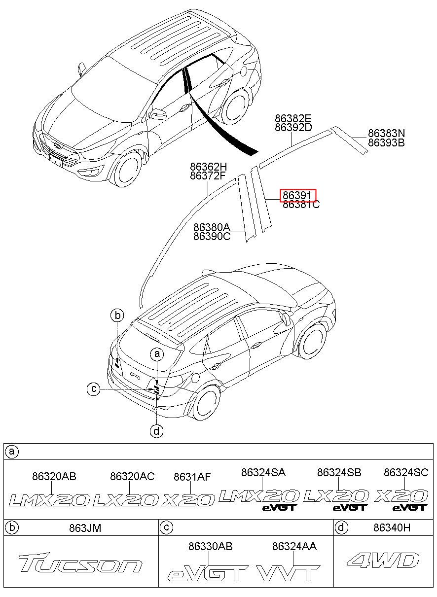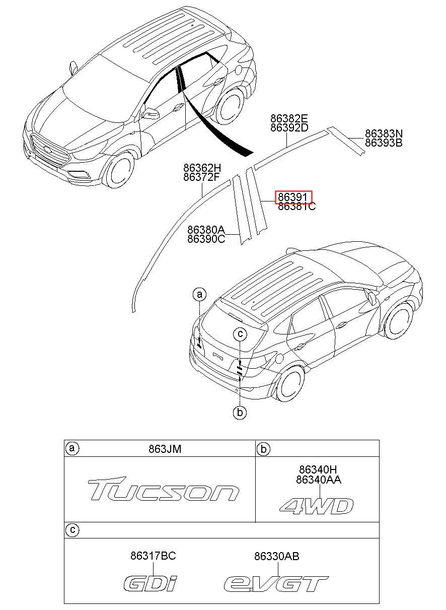 Part number from HYUNDAI (HS), TUCSON IX, IX35 10 : 863912S000 (86391-2S000)