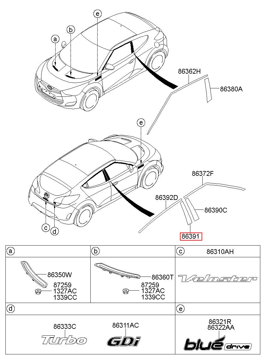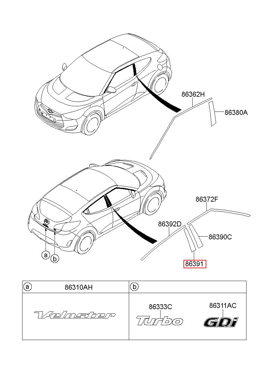 Part number from HYUNDAI (HS), VELOSTER 11 : 863912V010 (86391-2V010)