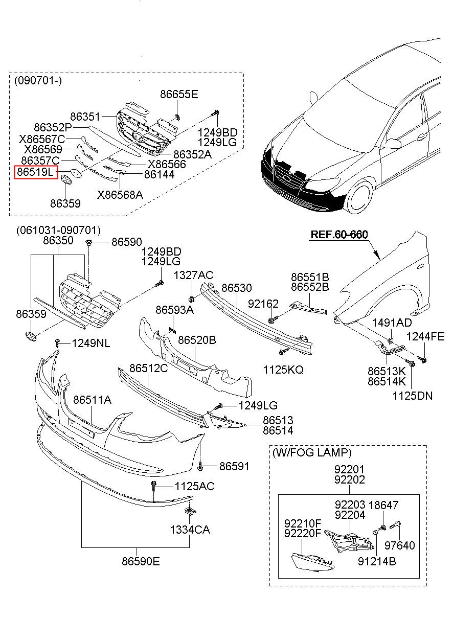 Part number from HYUNDAI (HS), NEW AVANTE (ELENTRA) : 865192H500 (86519-2H500)