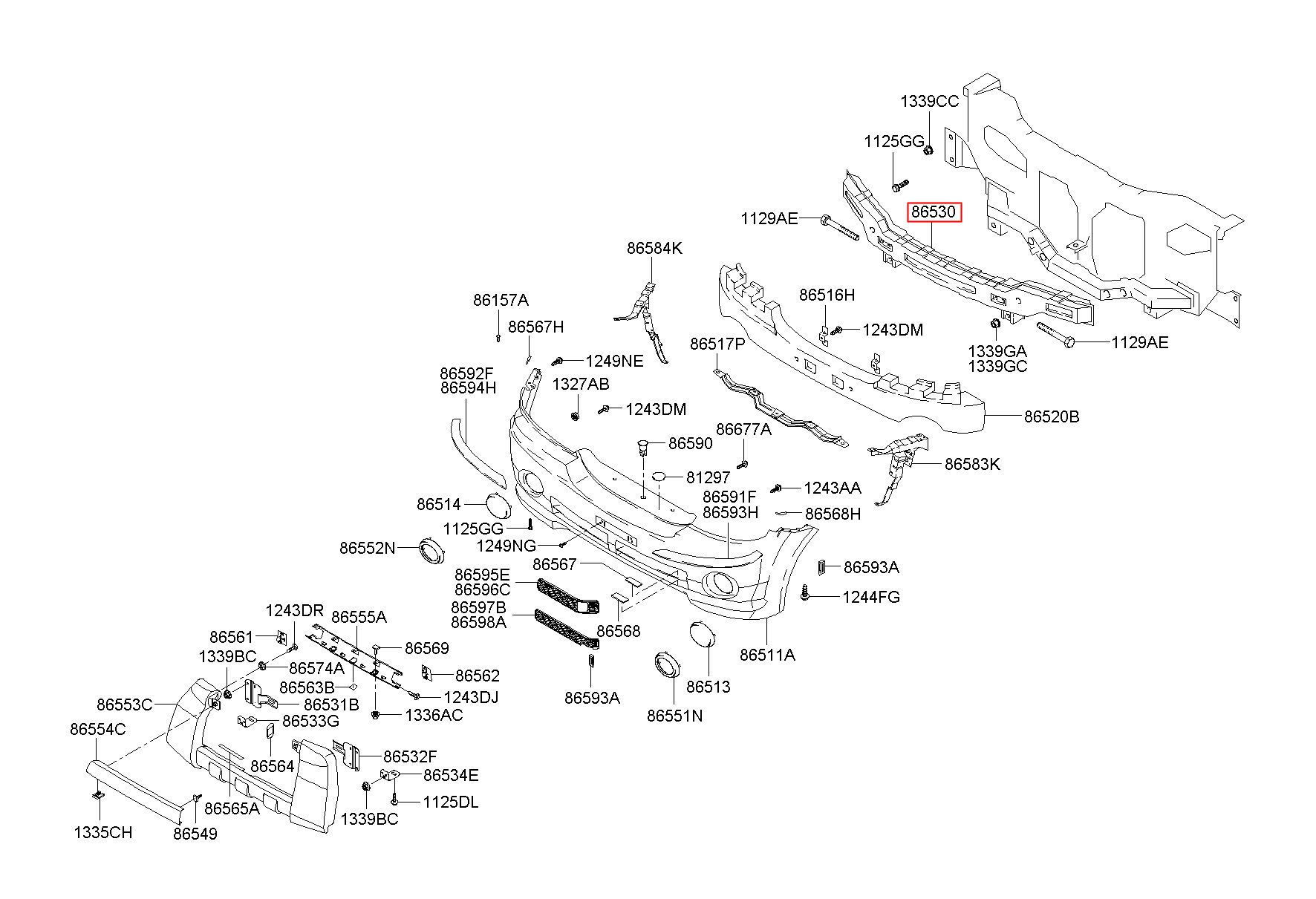 Part name: RAIL ASSY-FR BUMPER